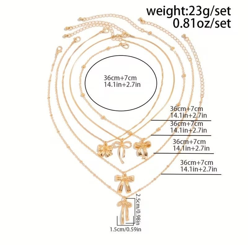 Review 5 pcs Bow Pendant Necklace Set