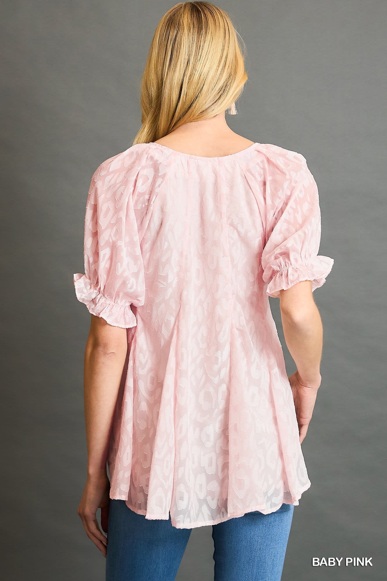 Review Leopard Print Puff Sleeve V-Neck Blouse with Lining