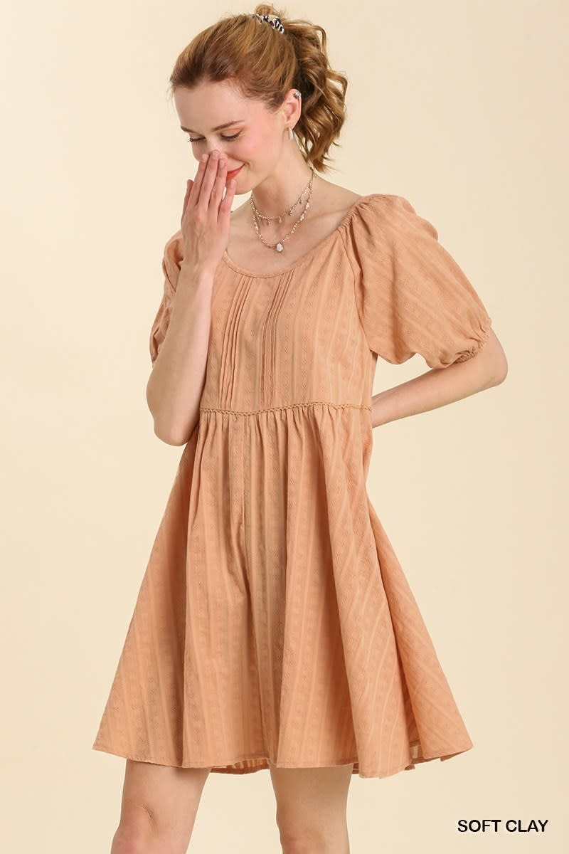 Review Pleated Dress with Front Top Lining & Puff Cuffed Sleeves