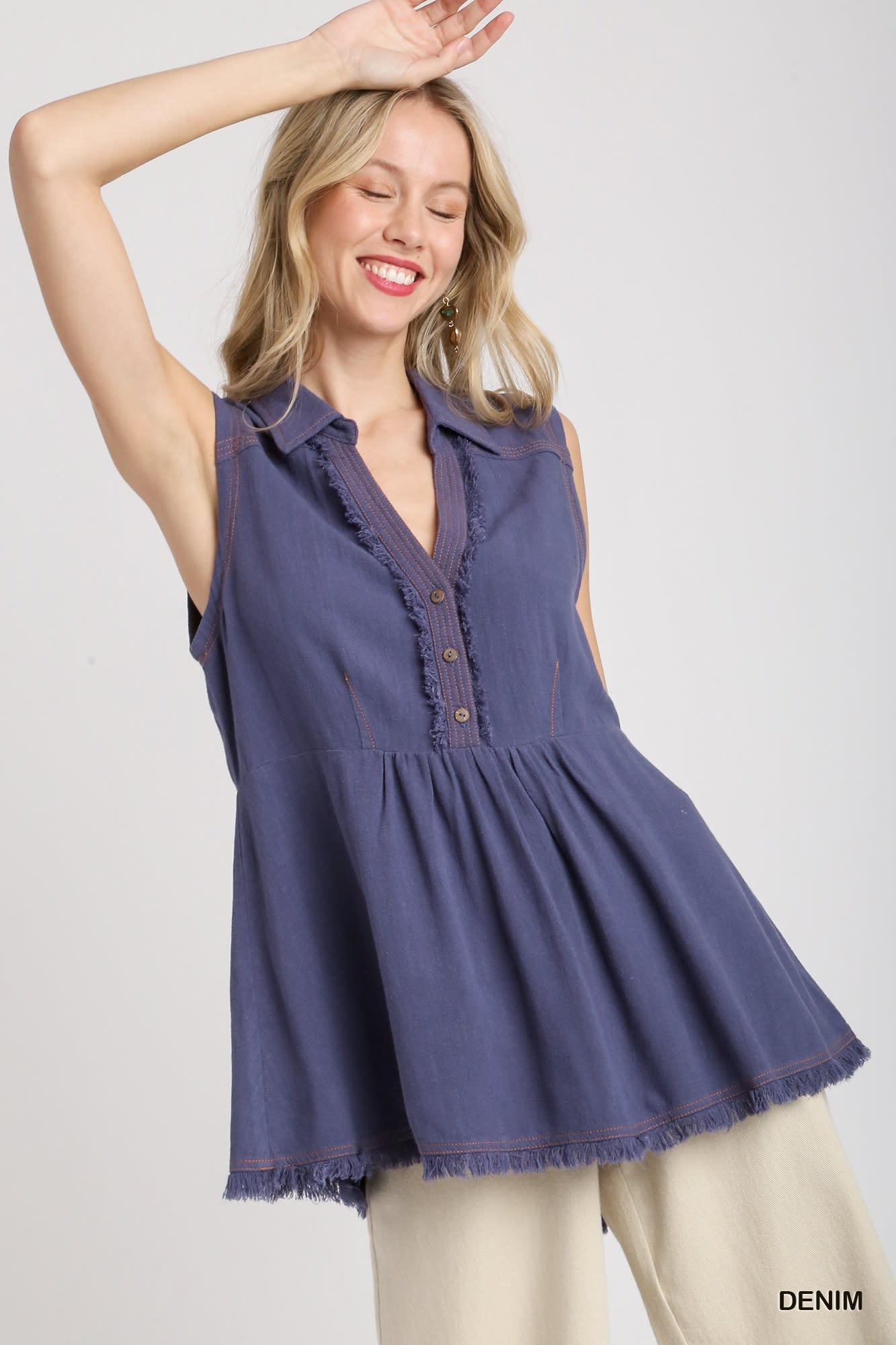 Review Regular Wash Sleeveless Tunic Top with Stitch & Fray Details