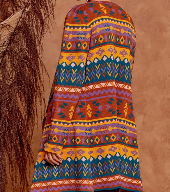 Review SJ Cardigan with Aztec Pattern Rust Teal 1X